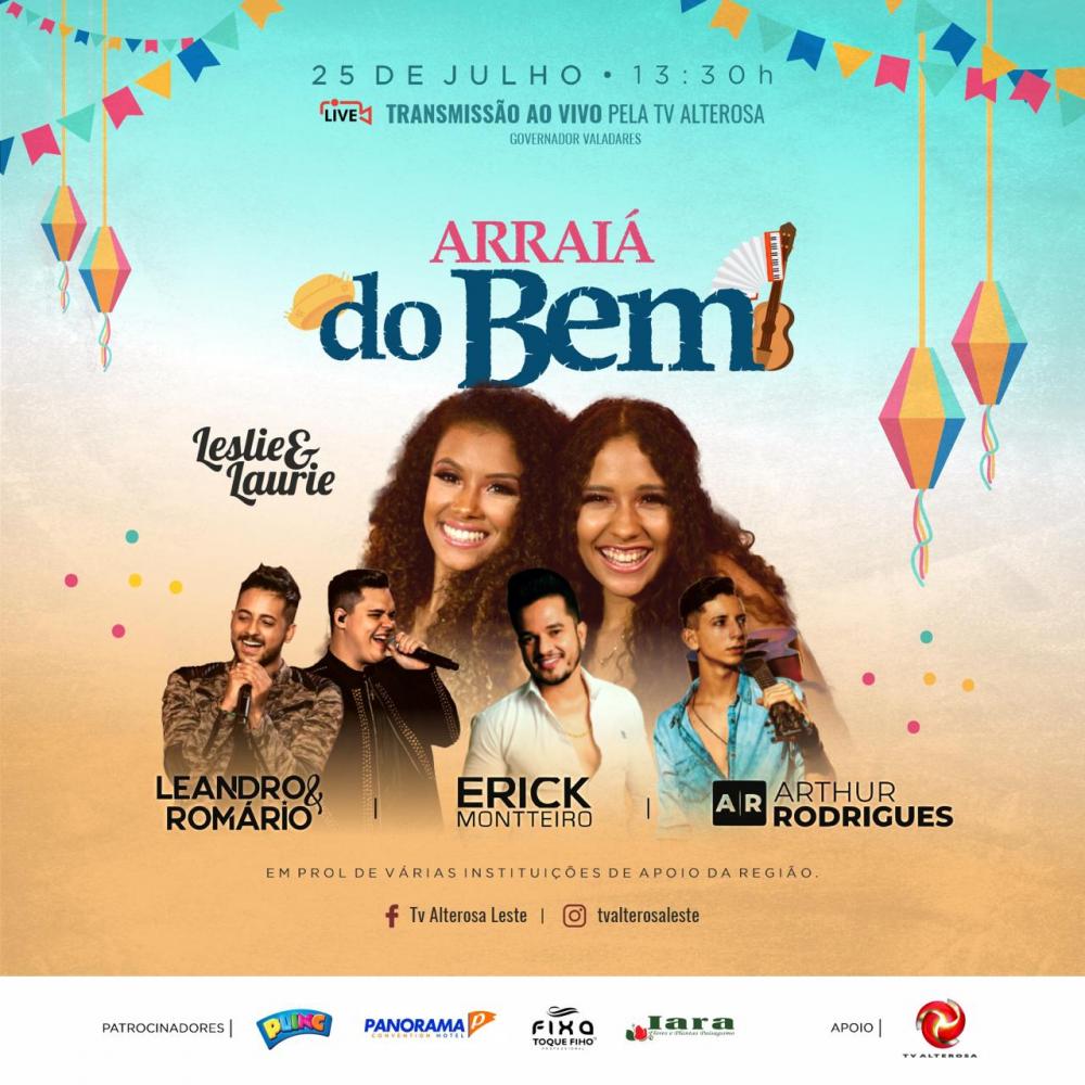 Artistas como Arthur Rodrigues, Erick Montteiro, Leslie e Laurie, Leandro e Romário e Washington Bonifácio, realizam live show para arrecadar doações; transmissão será realizada pela Tv Alterosa Leste.