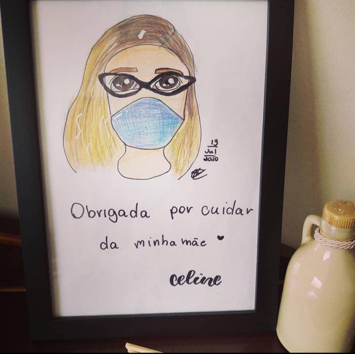 Filha de paciente curada da Covid-19 presenteia médica que cuidou da mãe no hospital com desenho, em Governador Valadares
