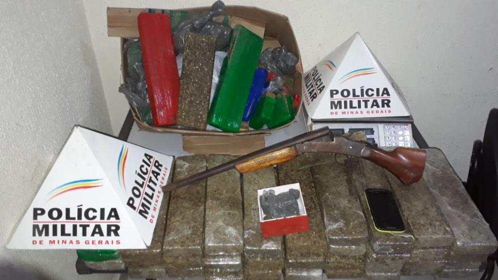 PM chegou até a droga por meio de denúncia anônima.Dentro da casa, a polícia apreendeu as 39 barras, vários tabletes fracionados de maconha, uma balança de precisão, um celular e uma arma de fogo de fabricação artesanal.