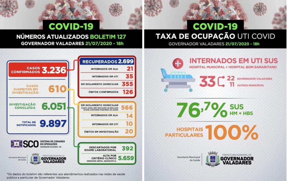 Prefeitura de Governador Valadares confirma mais duas mortes e 133 novos casos