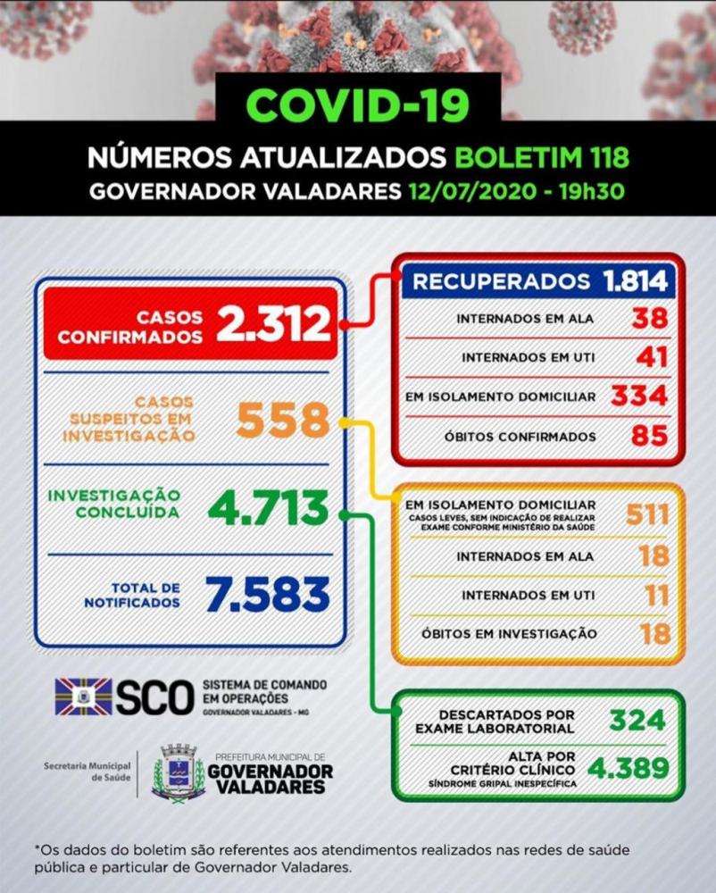 Governador Valadares confirma mais sete mortes por Covid-19 e total chega a 102 vítimas