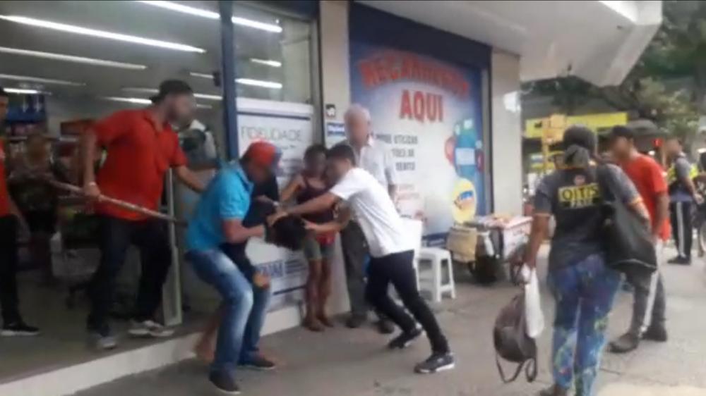 Vídeo mostra suspeito de roubo apanhando após tentar agir próximo à uma farmácia no centro de Governador Valadares